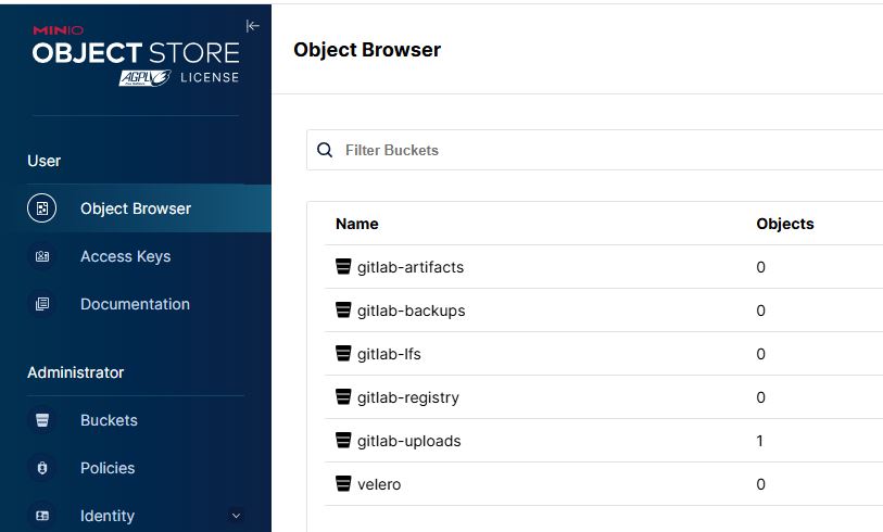 Создать в MinIO бакеты. Или подключите существующие.